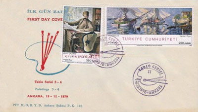 15.12.1970 tarihinde, Tablo 2 - Türk Ressamları - Hüseyin Avni Lifij - Nazmi Ziya konulu iki değrli Anma Pulları, 2,50 ETL ( 250 Kuruş ) ve 2,50 ETL ( 250 Kuruş ) olmak üzere toplam 5,00 ETL ( 500 Kuruş ) bedelle, bu pullara ait İlk Gün Zarfı, PTT Meslek Okulları Birliği Yardımlaşma Derneği - Ankara Şubesine ( PTT M.O.B.Y.D. Ankara Şubesi ) yaptırılarak tüm PTT Merkez Müdürlüklerinde ve Ankara PTT Başmüdürlüğü Ulus PTT Merkez Müdürlüğü Filateli Gişesi Ulus - Ankara adresinde satışa sunulmuştur.