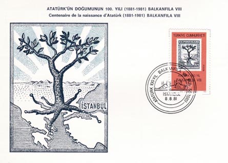 08.08.1981 tarihinde, Atatürk'ün Doğumunun 100. Yılı ( 1881 -1981 ) - Balkanfila VIII Pul Sergisi konulu Anma Bloğu, 50,00 ETL + 50,00 ETL olmak üzere toplam 100,00 ETL, bu Anma Bloğuna ait İlk Gün Zarfı 105,00 ETL bedelle tüm PTT Merkez Müdürlüklerinde ve Ankara PTT Başmüdürlüğü Ulus PTT Merkez Müdürlüğü Filateli Gişesi Ulus - Ankara adresinde satışa sunulmuştur.